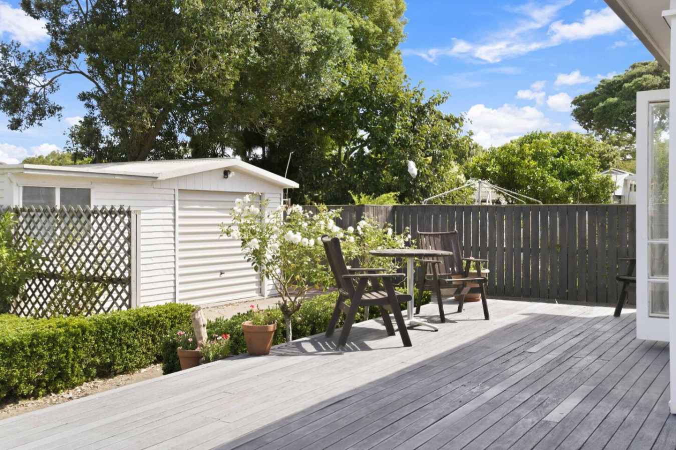 ✧ Deck with outdoor seating overlooking the backyard