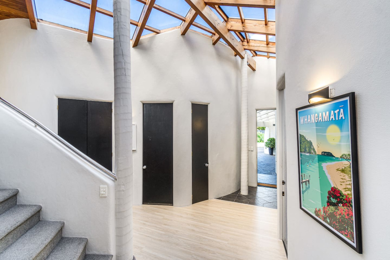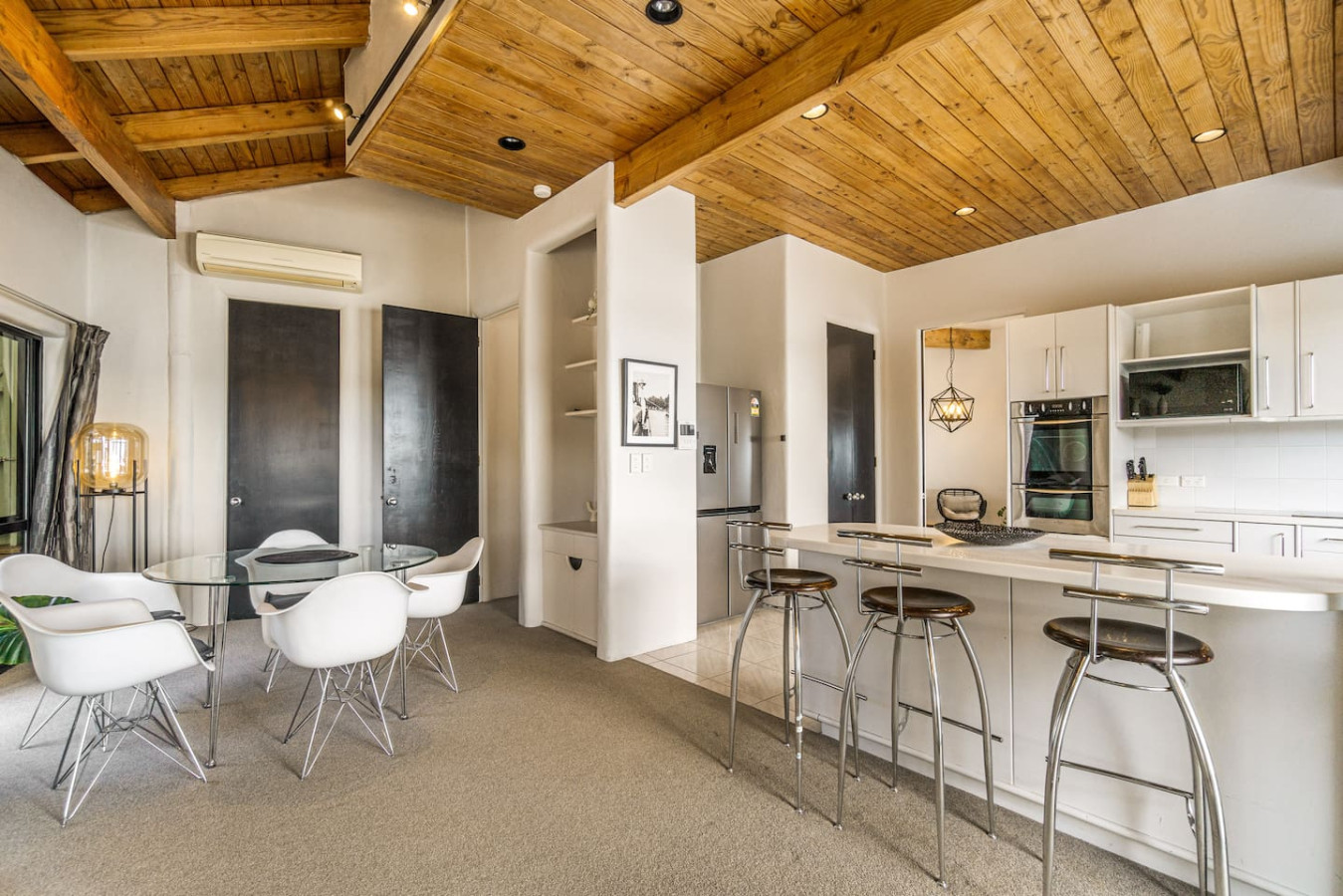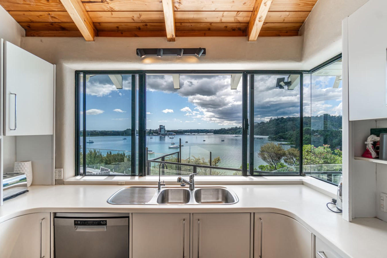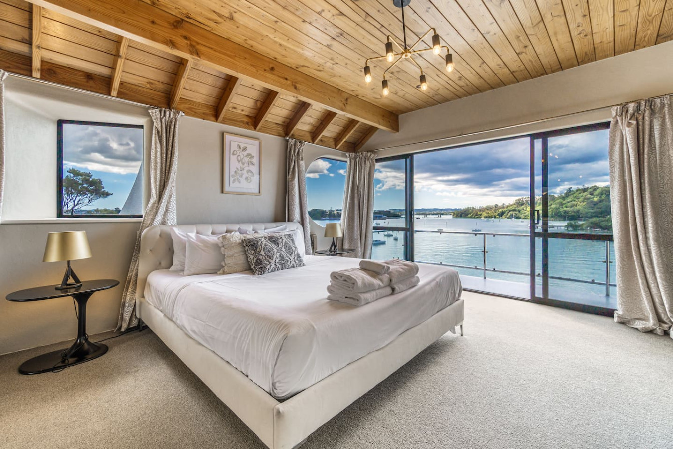 Designed and built in the 1970s for the renounced New Zealand Yatch Designer Alan Young and his wife Anne Young, yet the timeless beauty and quality stand still to this day. Thoughtfully curated with high-quality interiors through luxury designs, artworks and furniture, the home offers open-plan living with outdoor and indoor flow, and views of the waterway and bay from the kitchen and living spaces and upstairs. A fully-equipped kitchen with a long benchtop and dining tables can satisfy any great cook or to entertain guests. While the lounges are cosy spaces to gather and have quality time with our loved ones, the deck and pool are great places to hang out during sunny days to relax away.