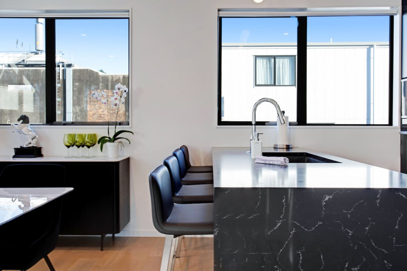 Thoughtfully built and designed with quality, this light-filled home offers open-plan living with seamless indoor and outdoor flow, featuring a balcony with a view of the street corners and shops. The main lounge, equipped with a smart TV, is heated or cooled by an air conditioner and provides a comfortable space to gather and spend quality time with your loved ones. A fully equipped kitchen with a marble benchtop can satisfy even the most discerning cook in the family.