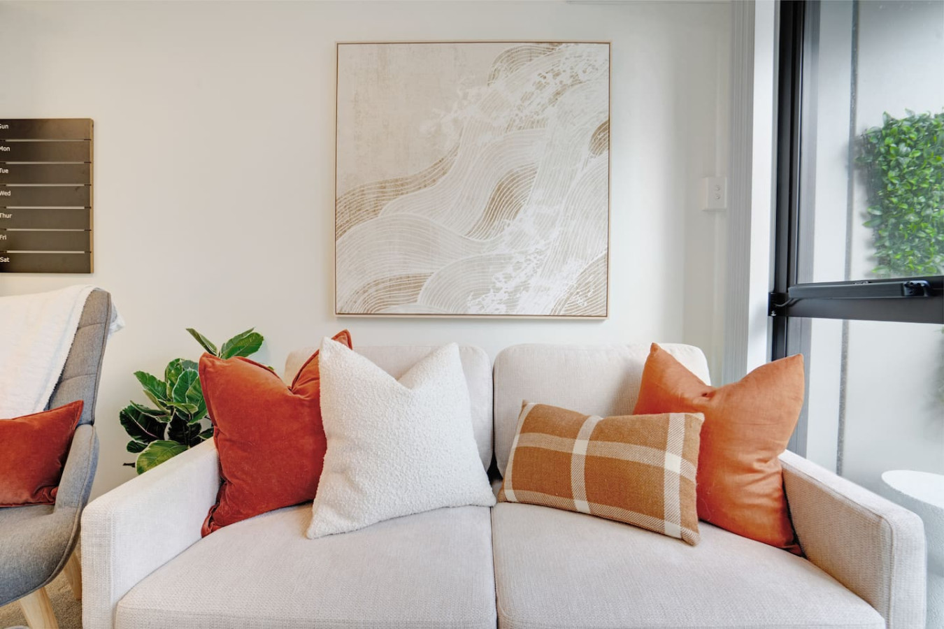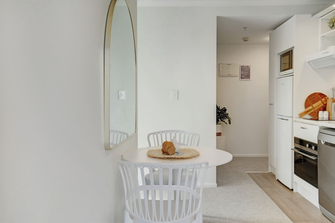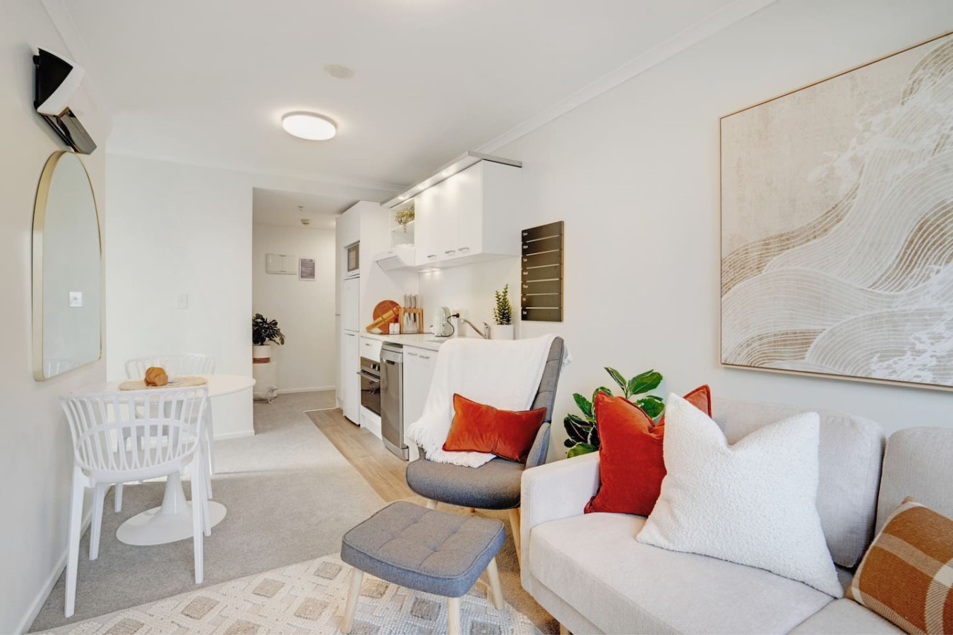 Thoughtfully curated with quality interiors featuring warm and neutral-coloured designs, artworks, and furniture, the home offers an open-plan living space with seamless indoor-outdoor flow, providing a view of the street and the nearby city high-rises. While the main lounge, equipped with a heat pump, is a cosy space to gather and spend quality time with our loved ones, the well-equipped boutique kitchen can satisfy your culinary skills. Please note that there is nearby or direct traffic adjacent to the building, so you may expect some traffic noise.