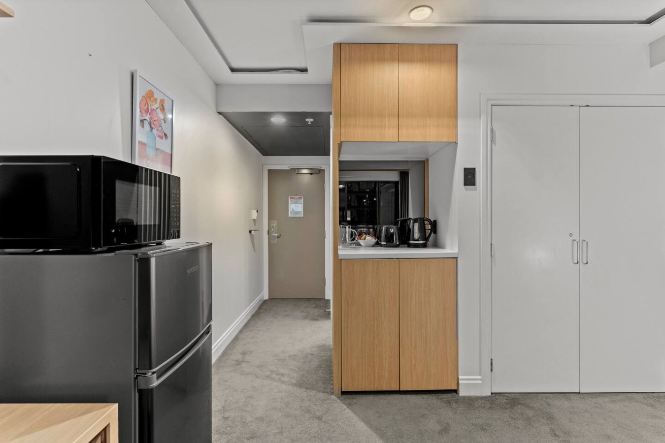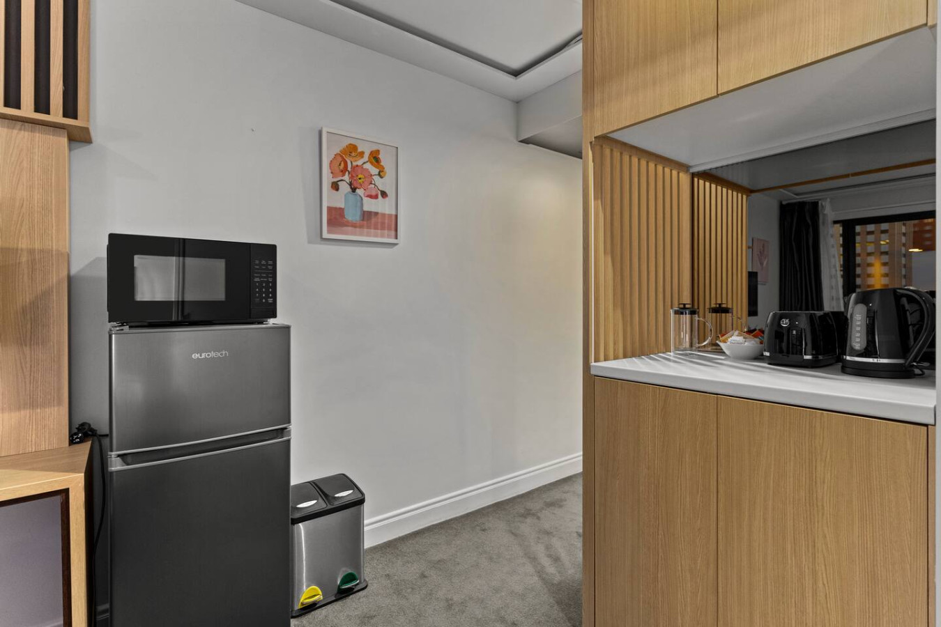 ✧ Kitchenette with a toaster, kettle, microwave and small fridge/freezer