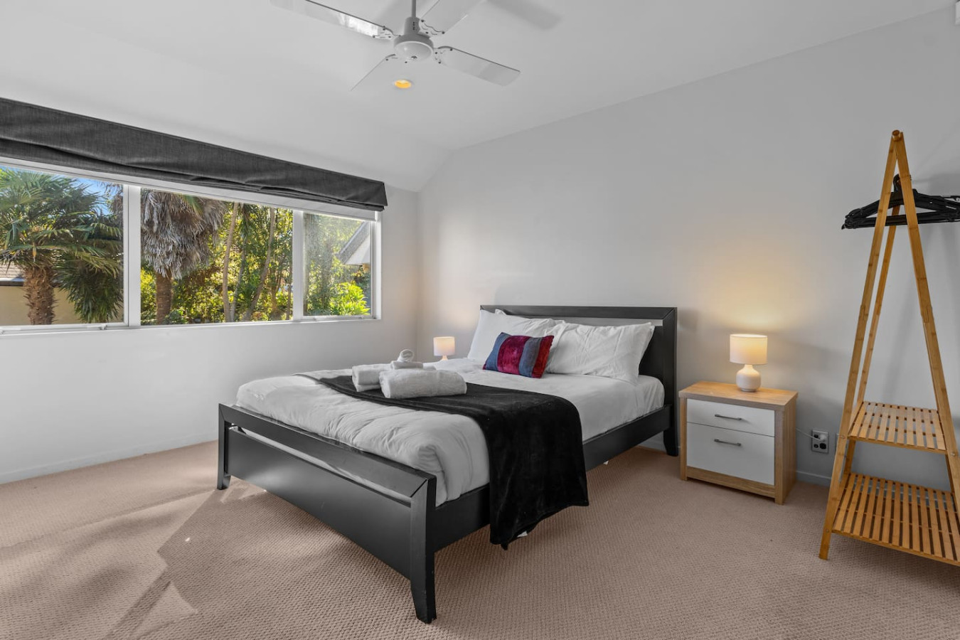 Inside, you’ll find open-plan living spaces and ceiling fans to keep you cool during the warmer months.