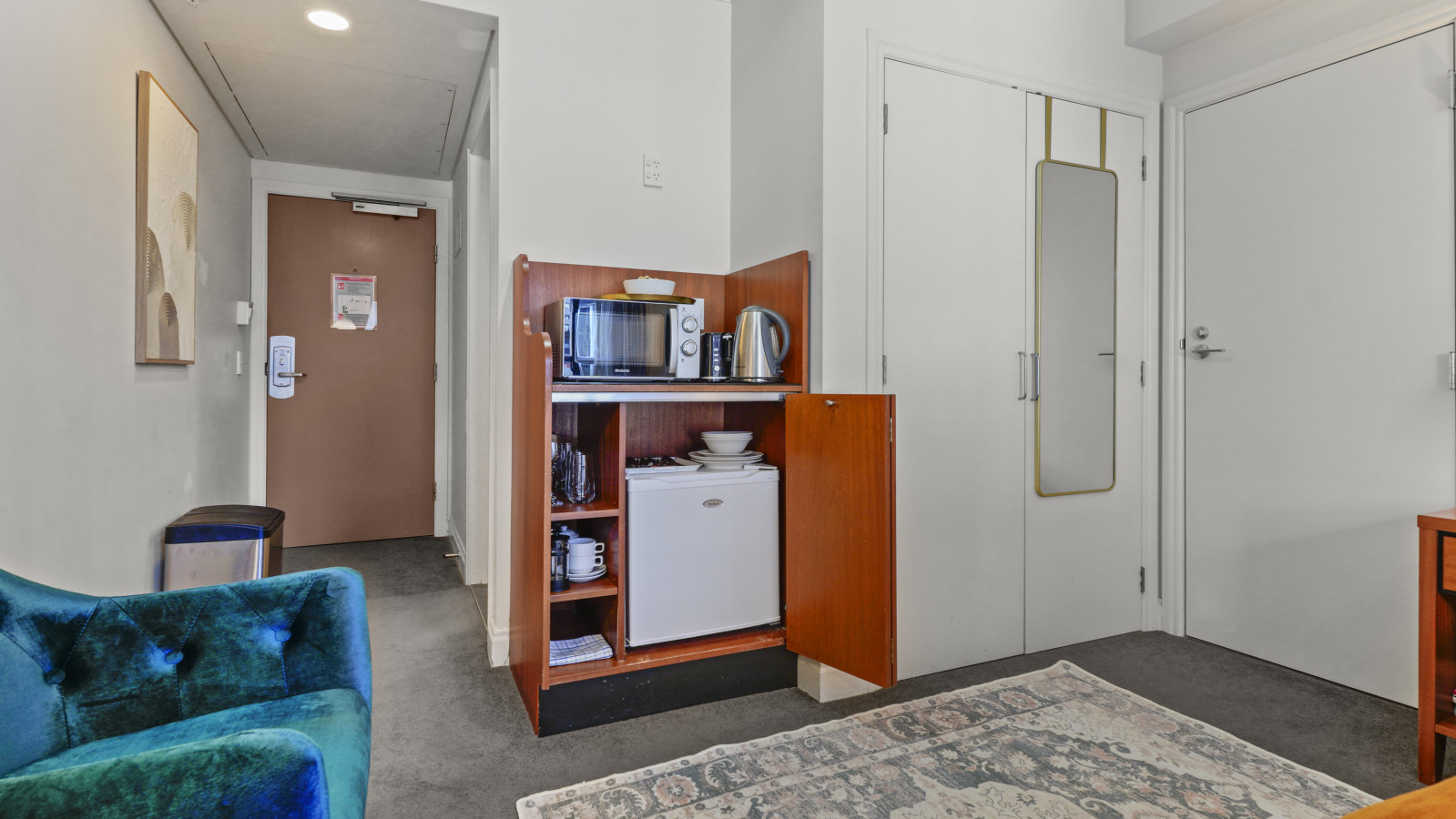 ✧ Kitchenette with a toaster, kettle, microwave and mini-fridge