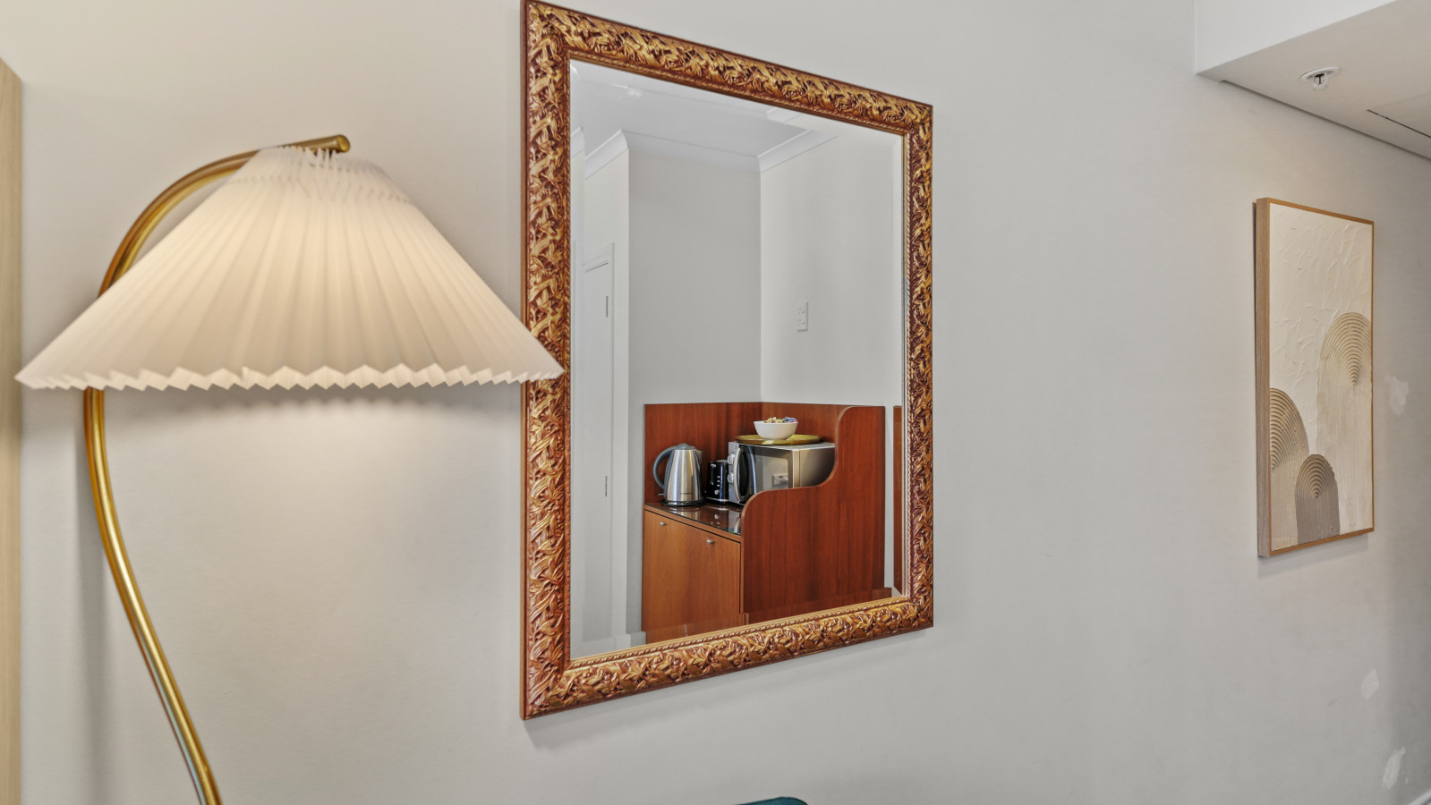 Set back from the busy road, away from traffic and the hustle and bustle of the city, the studio offers a restful haven in the city centre with thoughtfully curated, quality interiors through colourful designs, artworks and furniture, equipped with a central air-conditioning system for all year round comfort no matter what the weather, indoor-outdoor flow, view of the city high rises from the bed, velvet arm chairs or soaking up the sun from the balcony. Building facilities with a shared gym and an indoor pool are great for keeping up fitness or relaxation.