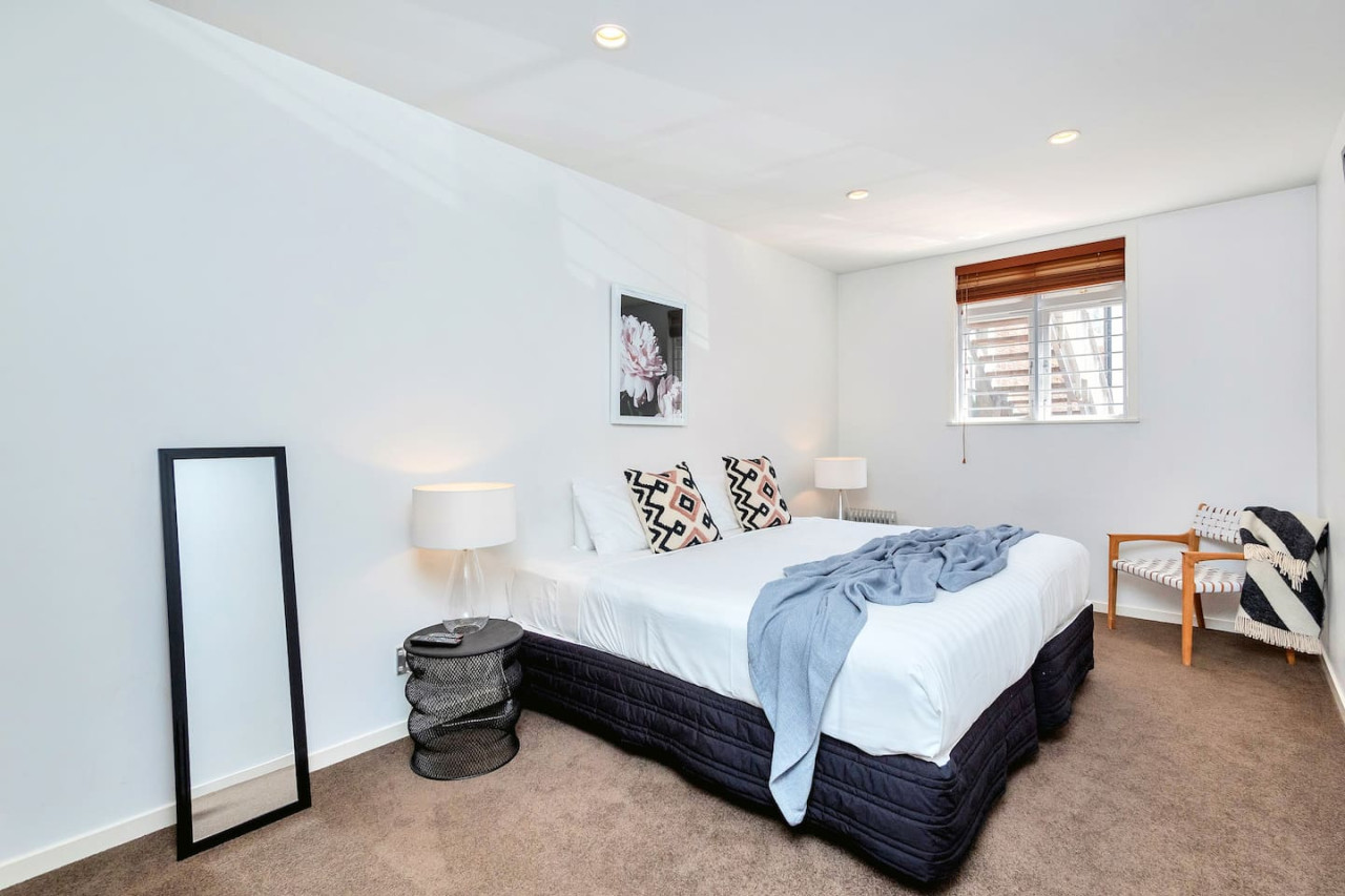 This ground floor apartment has high ceilings, generous open plan living areas, and two bedrooms. Perfect for corporate travellers, a small family or group in town for the weekend.