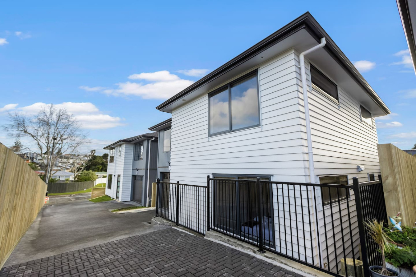 This house spans two levels and has four bedrooms and three bathrooms, making it ideal for families of all sizes. With modern finishes, the house is light and airy with ranch sliders that open onto the back garden area.