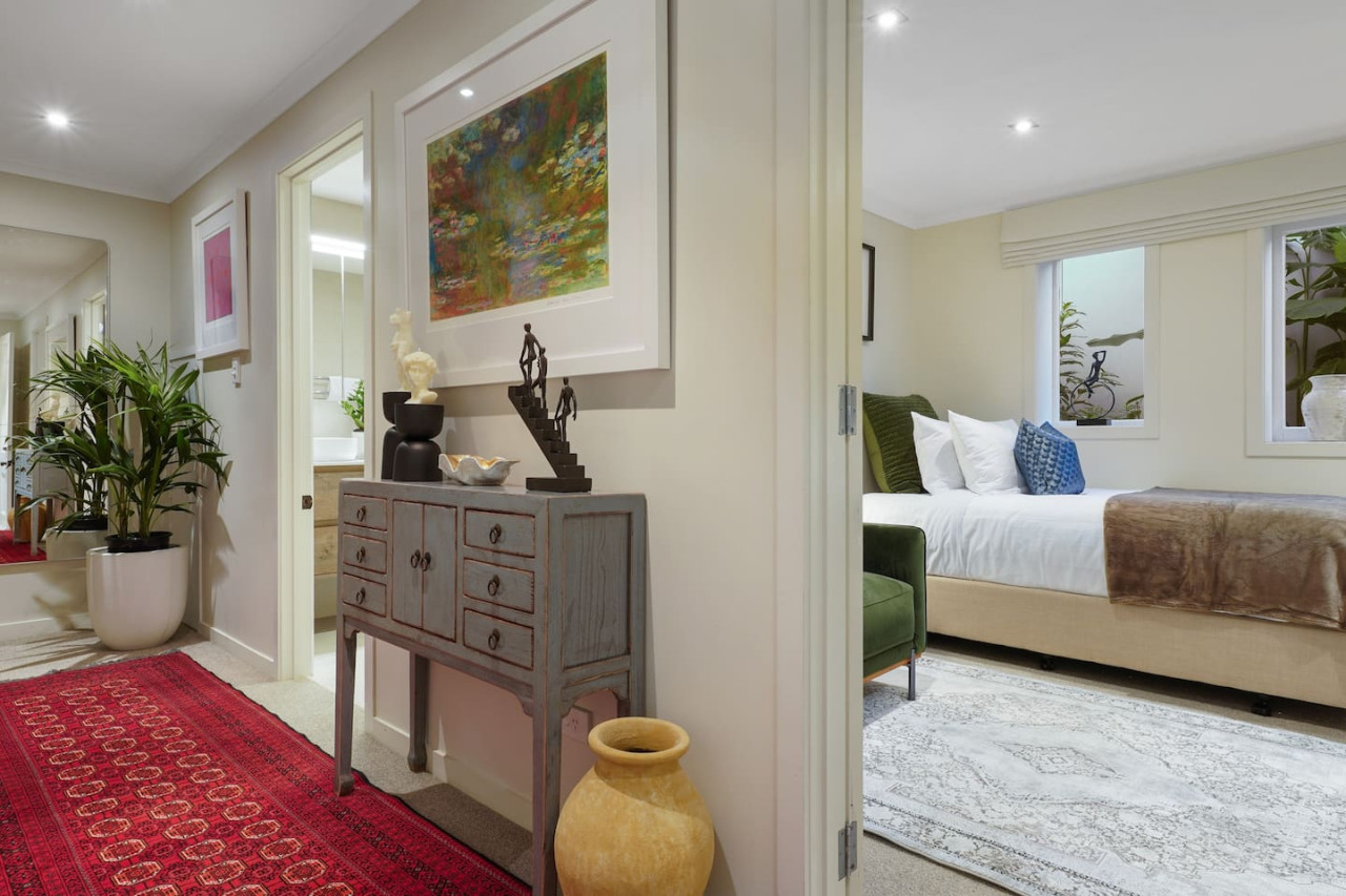 Bedroom 1 (master): Queen-sized bed, walk-in wardrobe and ensuite bathroom