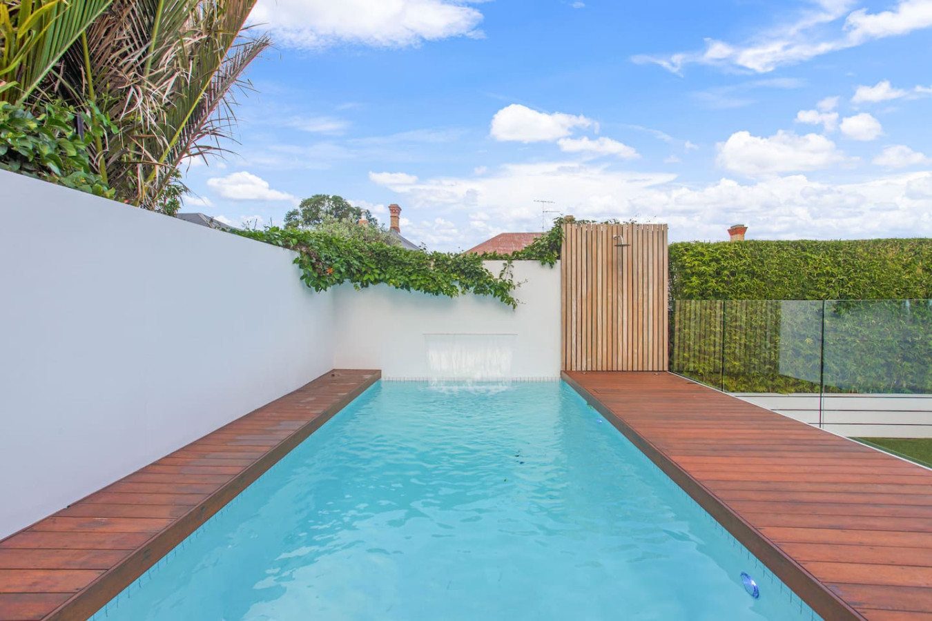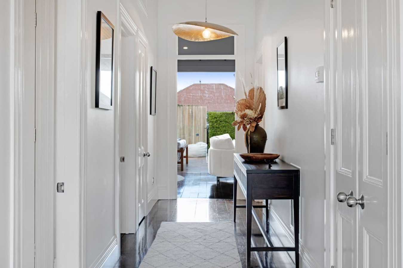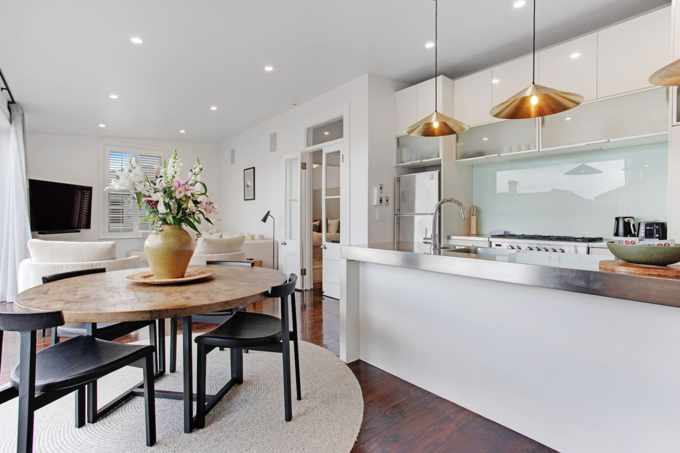 This three-bedroom, two-bathroom home features an open-plan living area and indoor-outdoor flow, complemented by a pool and deck in the backyard. The interiors have been carefully curated to create a luxurious home away from home.