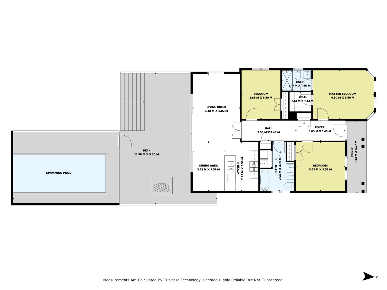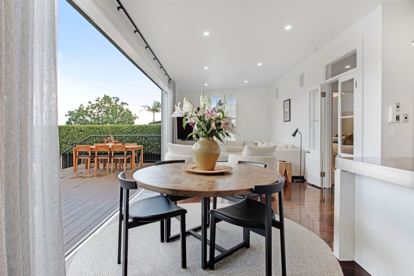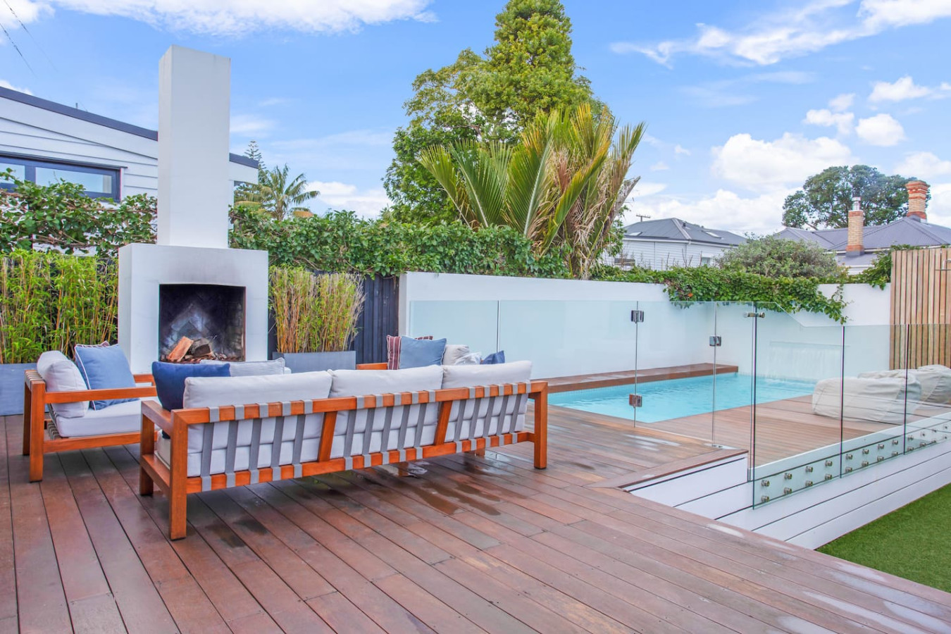 This three-bedroom, two-bathroom home features an open-plan living area and indoor-outdoor flow, complemented by a pool and deck in the backyard. The interiors have been carefully curated to create a luxurious home away from home.
