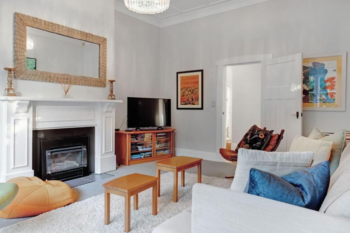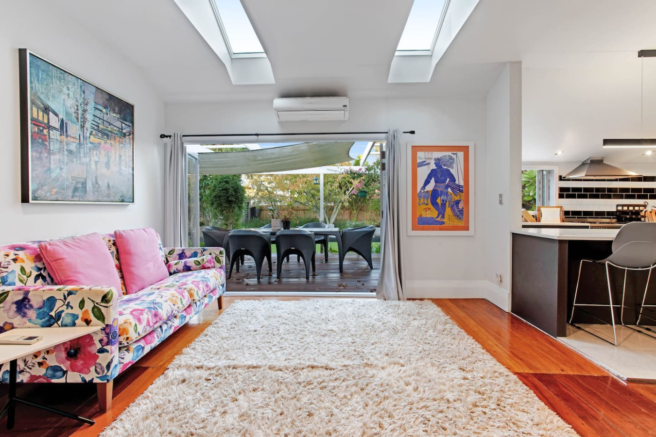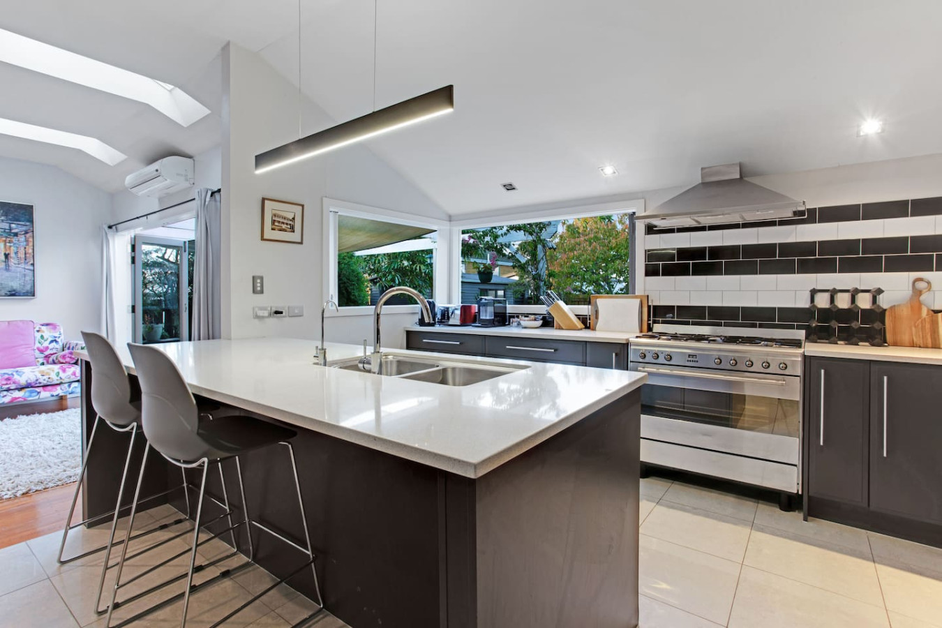 Thoughtfully curated with high-quality interiors featuring colourful designs, artworks, and furniture, the home offers open-plan living with seamless indoor-outdoor flow, allowing for a view of the backyard garden from the kitchen and dining area. While the main lounge with a fireplace is a cosy space to gather and spend quality time with loved ones, the deck and backyard are great places to hang out during sunny days. A fully equipped kitchen with a second marble benchtop can satisfy any great cook in the family.