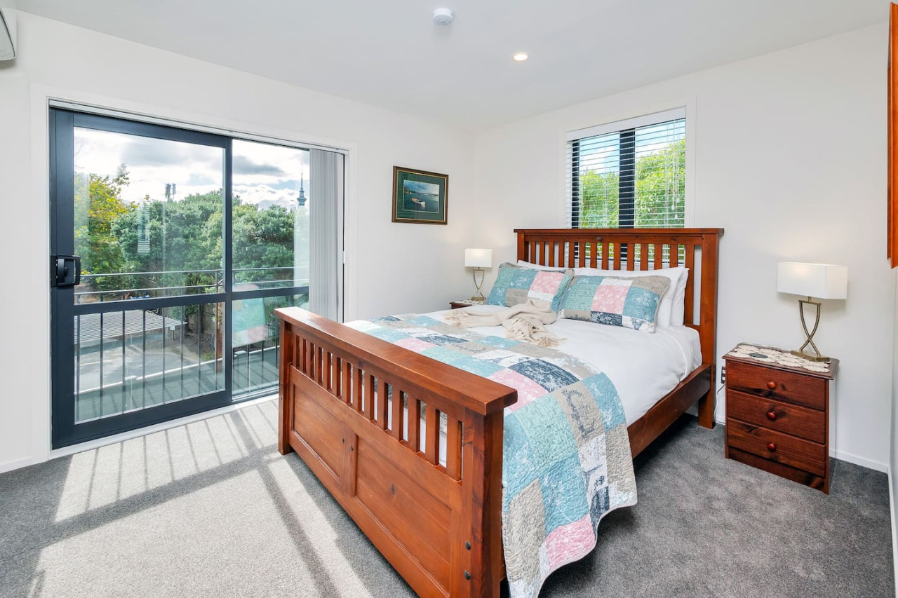 This chic two-bedroom townhouse offers a prime location just minutes from the City Centre and unique attractions. Enjoy a splendid view of the Sky Tower from one of the bedrooms, complemented by a charming Juliet-style balcony that adds a touch of elegance to your stay.