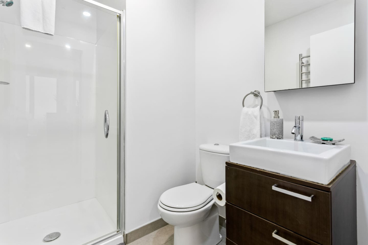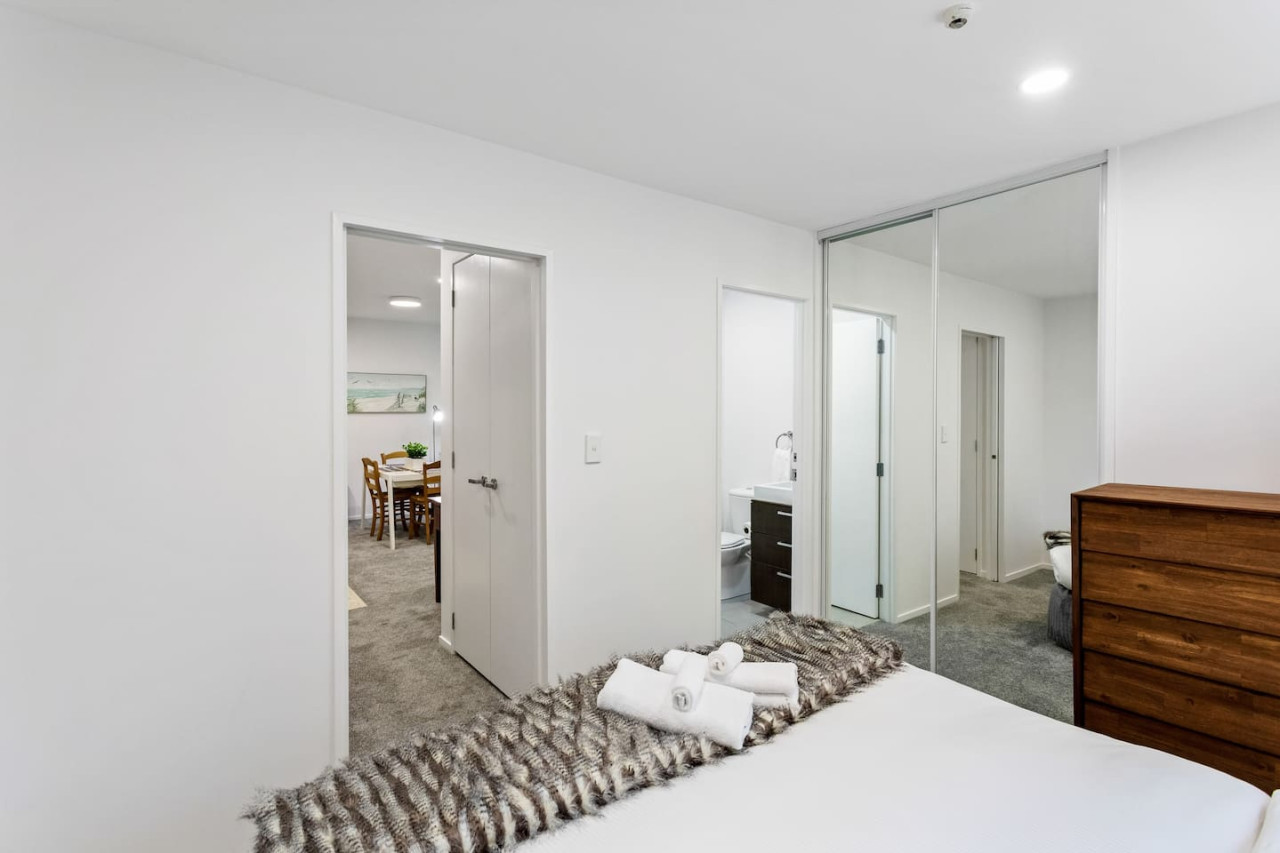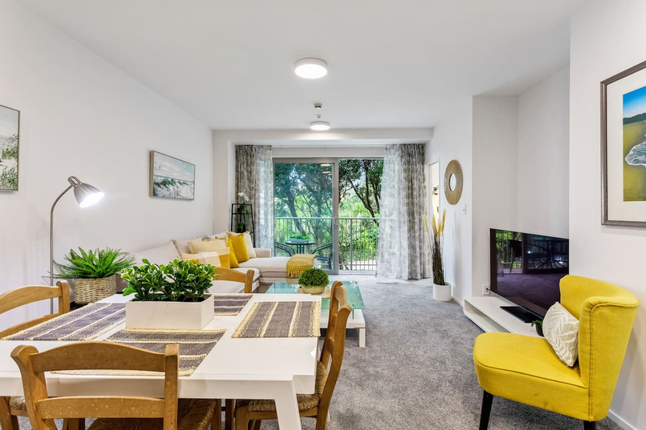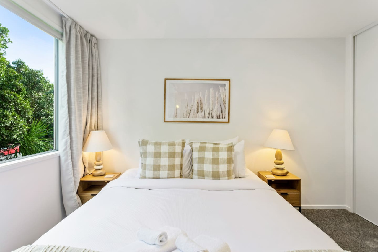 This light and bright apartment in Takapuna is an excellent base for exploring the Takapuna and North Shore area. With two bedrooms, each with its ensuite bathroom and double wardrobes, there is plenty of space for each person.