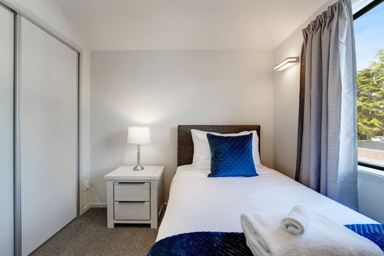 Bedroom 3: King-single sized medium comfort bed with double wardrobe