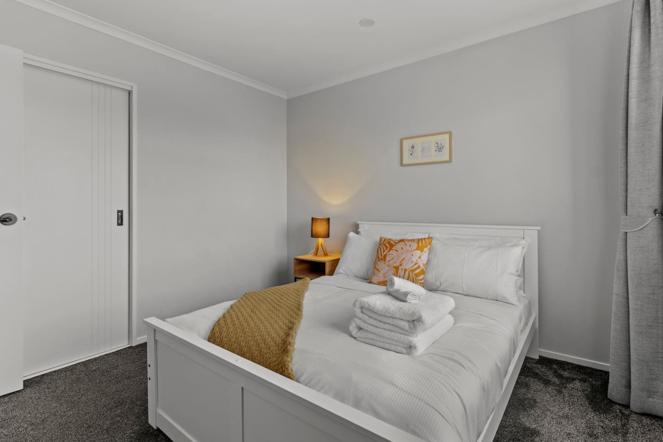 Bedroom Two: Queen-sized medium comfort bed with double wardrobe and semi-ensuite