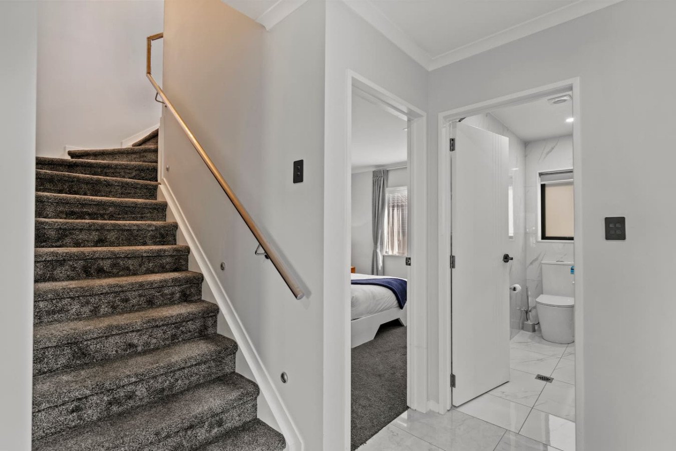 Set back from the street down a long shared driveway, the spacious home offers open-plan living on the ground floor, plus one bedroom and one full bathroom, with all other 3 bedrooms on the upper level, including a semi-ensuite, providing comfort and privacy for the entire family. The open-plan living comes with a lounge, dining, kitchen, and an indoor-outdoor flow, with a simple opening of the range slider for easy-breezy living and resting. Along with one off-street parking right outside the house, the garage with internal access ensures ultimate convenience. A fully equipped modern kitchen with essential appliances can satisfy any cook in the group.