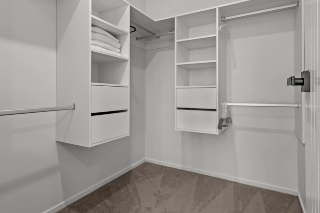 Bedroom 1: Queen-sized medium comfort bed with walk-in wardrobe and ensuite bathroom