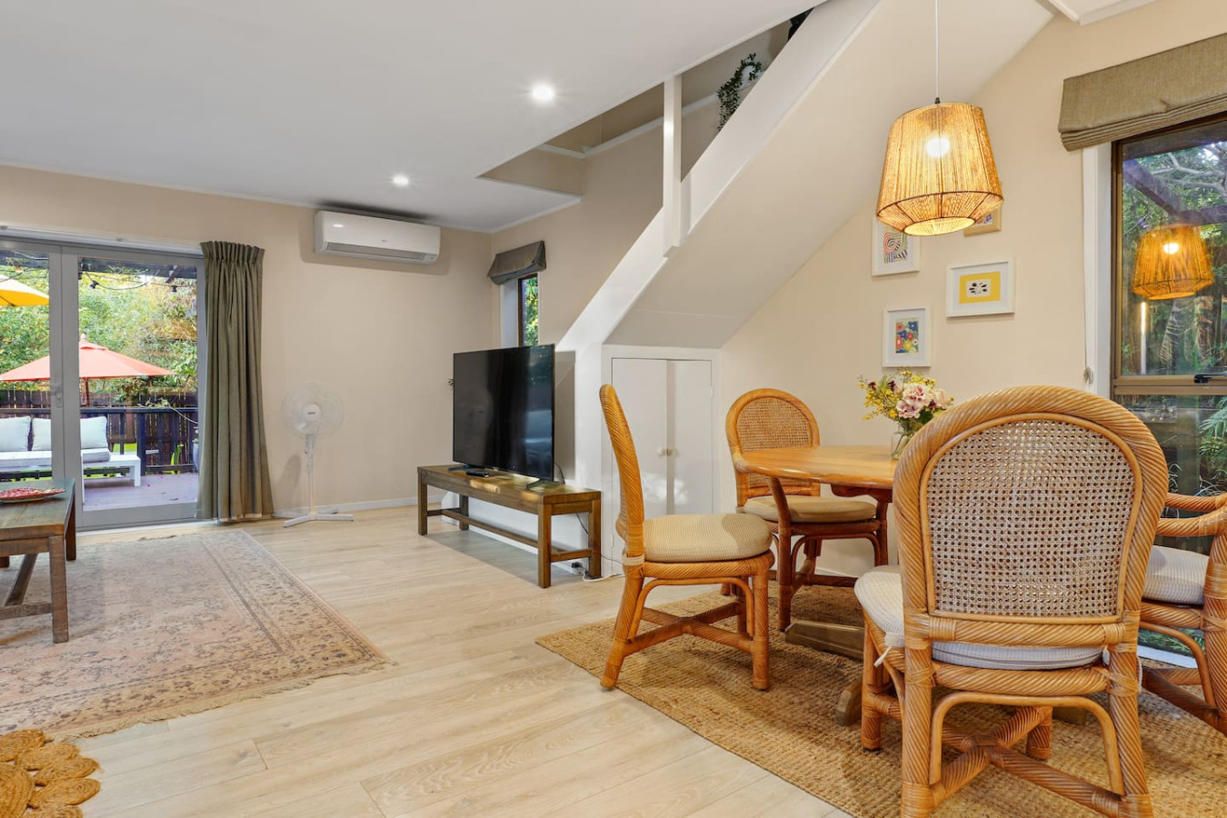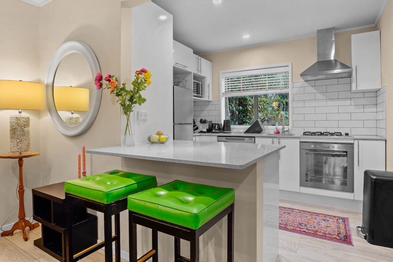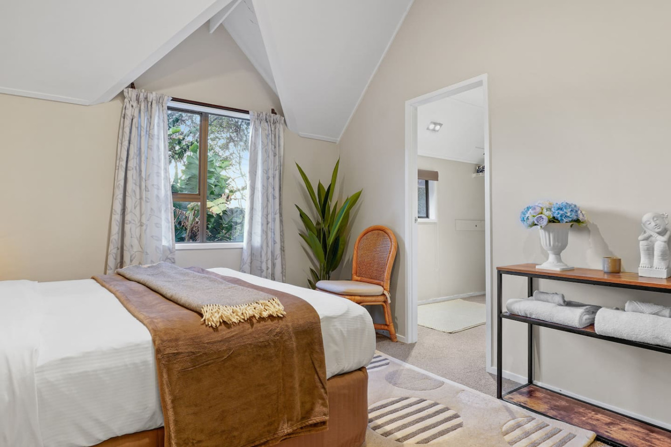 Wake up to the soothing chorus of birdsong and a sense of undeniable tranquility. Start your morning with a peaceful yoga session in the upstairs yoga room or out on the sun-drenched deck, where you can soak up the sights and sounds of nature—or simply unwind with your morning coffee. Just a two-minute meander through the quiet cul-de-sac leads you to the spectacular Long Bay Beach Reserve, while hidden local gems like Winston Cove and Rock Isle Beach await just ten minutes up the road. A pleasant five-minute stroll takes you to the town center, home to an award-winning bakery, charming local shops, and a variety of themed restaurants. For a dreamy seaside escape, wander ten minutes to the picturesque Waiake Beach and treat yourself to a classic combo of burgers and ice cream at Burger Burger. This is the true ambience of coastal living.