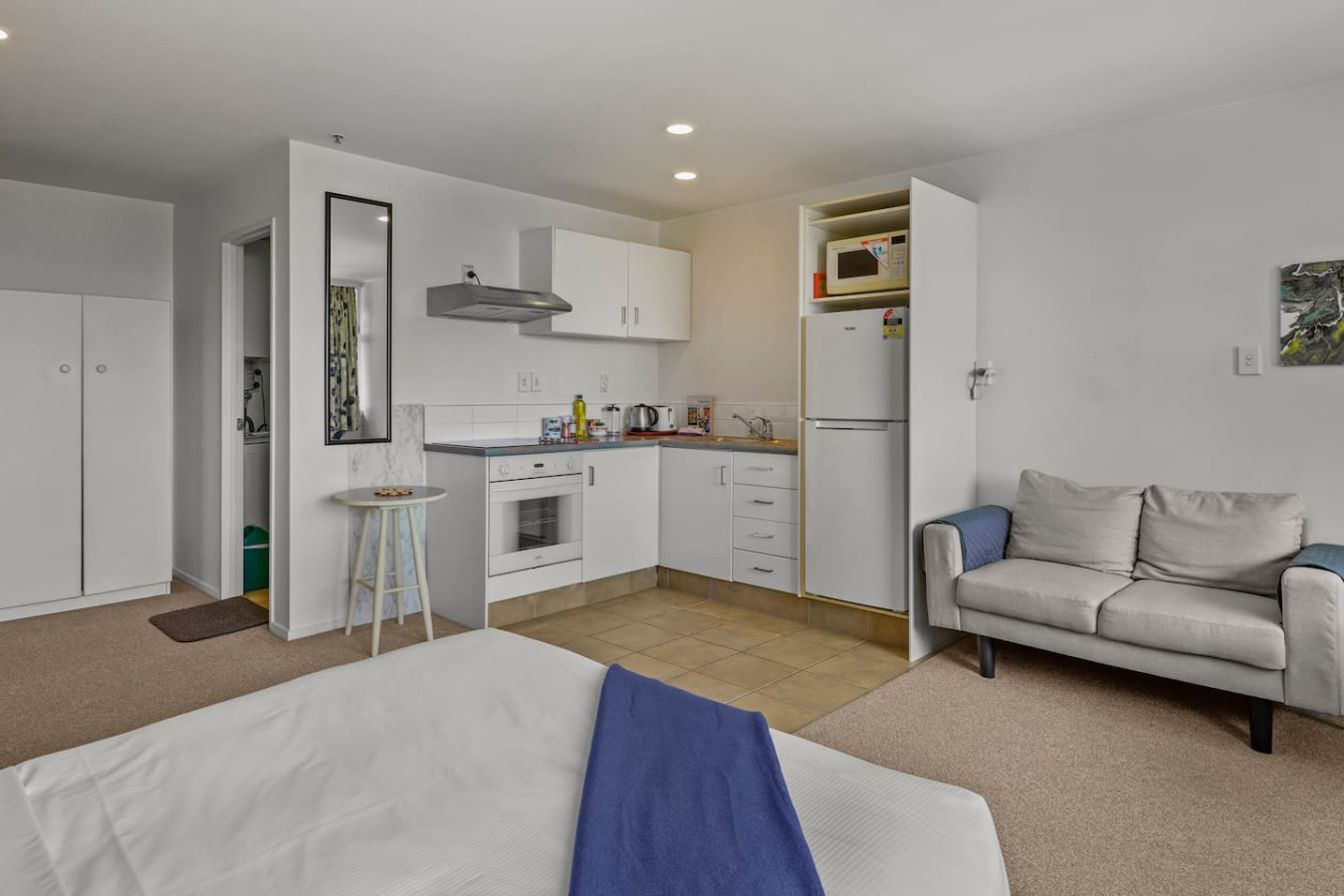 Studio: Double-sized medium comfort bed with single wardrobe