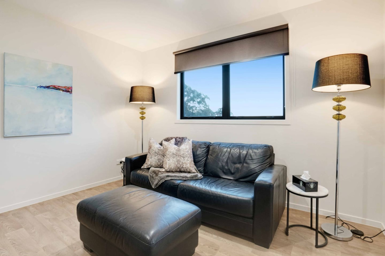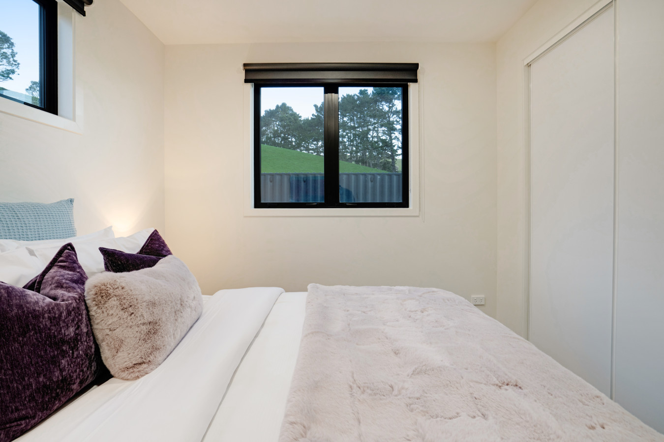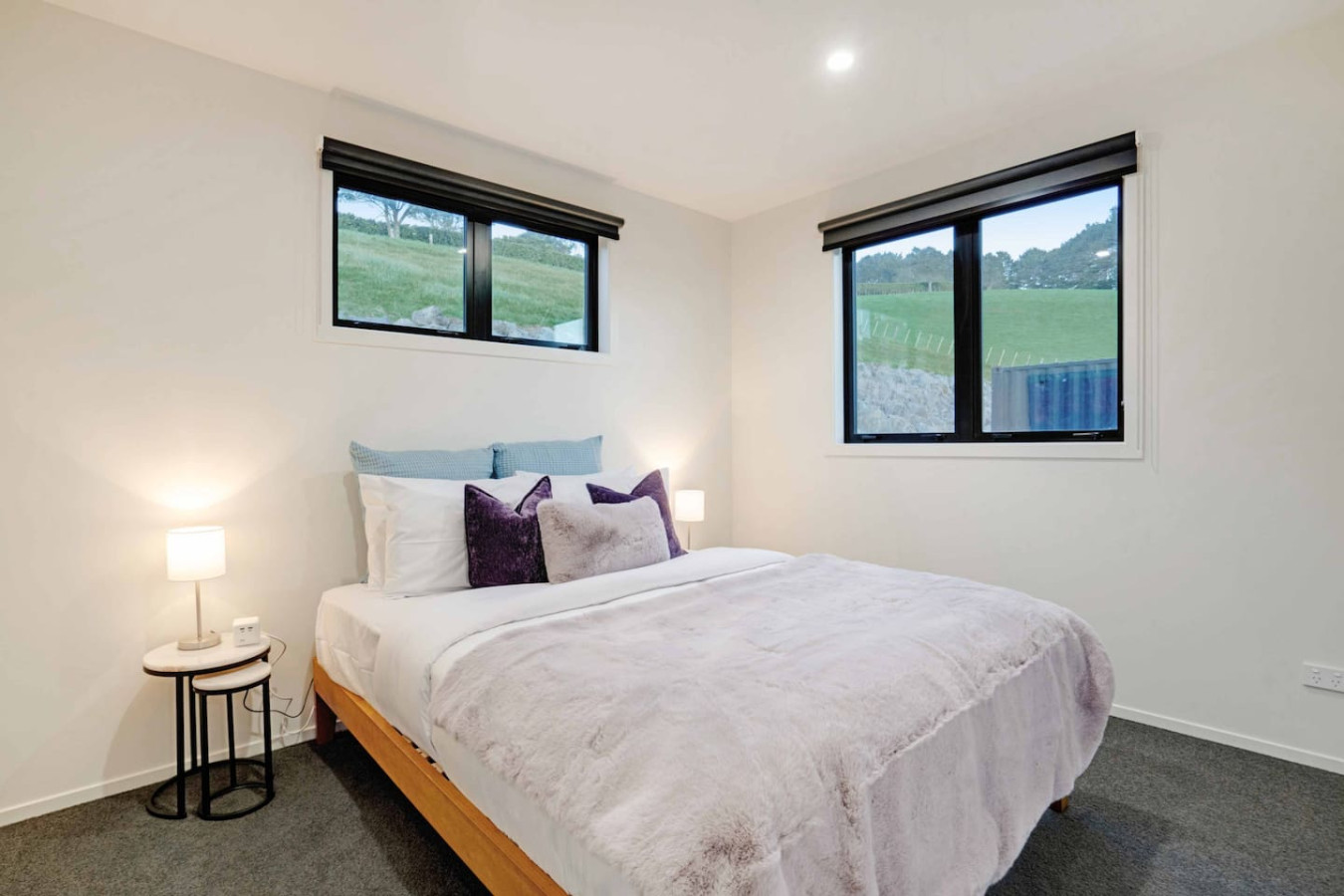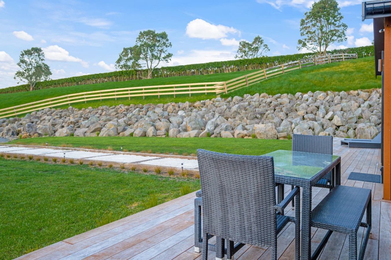 Thoughtfully curated with high quality interiors through colourful designs, artworks and furniture, the home offers open-plan living with outdoor and indoor flow, viewing hills from all the windows. While the main living areas with heat pump or air-conditioner is a cosy space to gather and have quality time with your loved one, the deck and backyard is a great place to hang out during sunny days or watch the sunset over the hills. The second living room is equipped with a TV to watch your favorite movies and shows. Fully-equipped kitchen with marble bench top can satisfy any great cooks for the family.