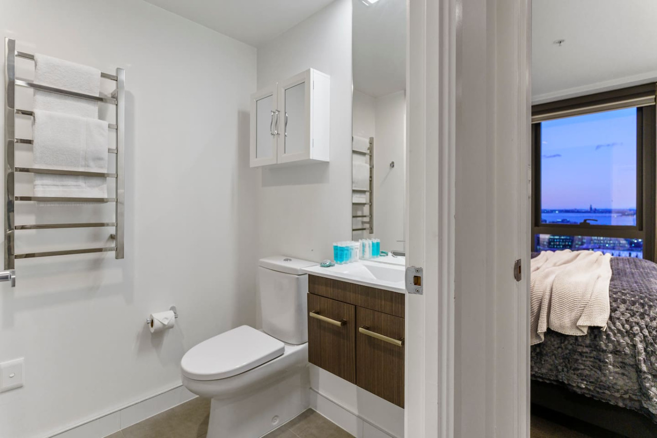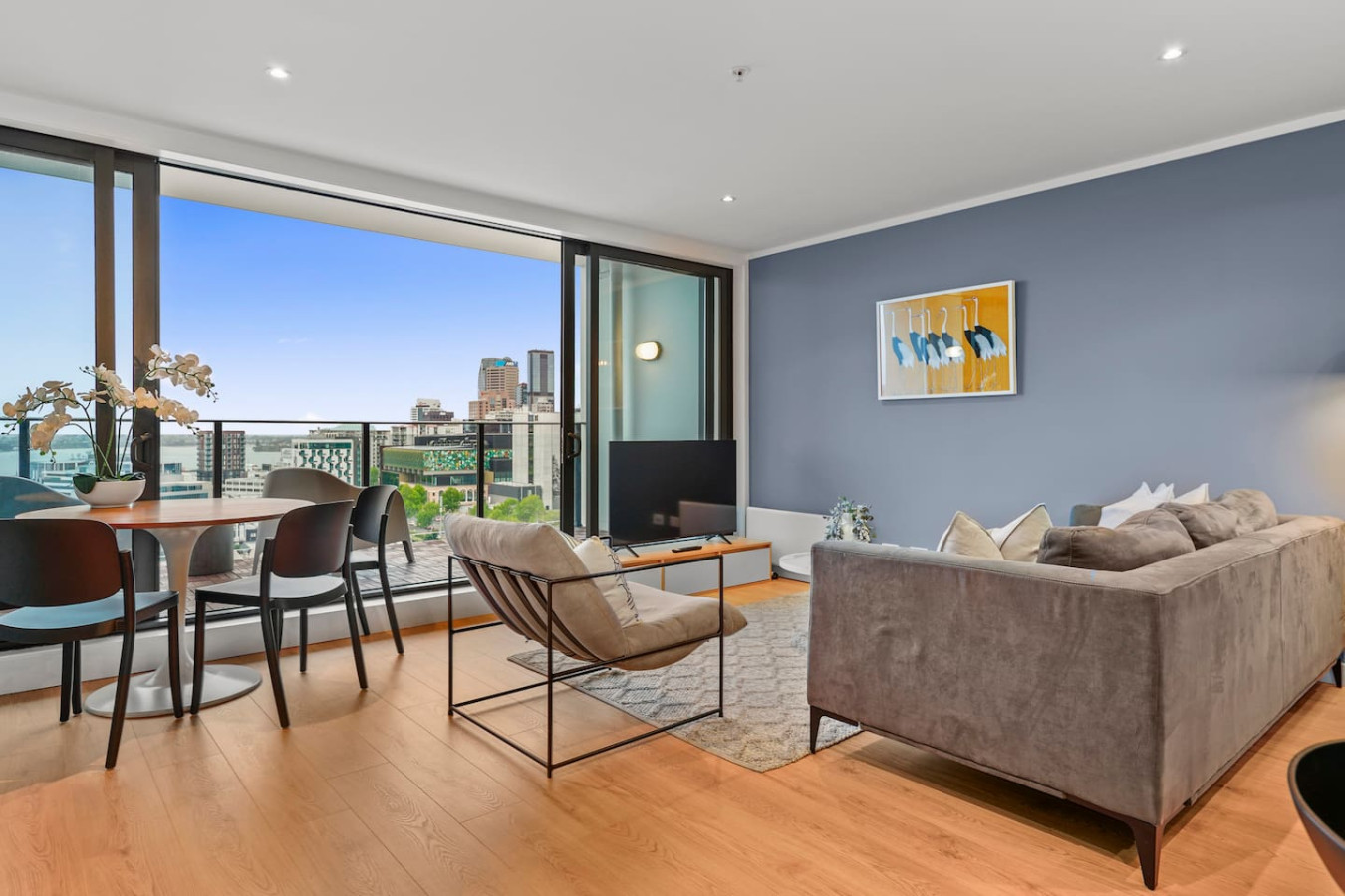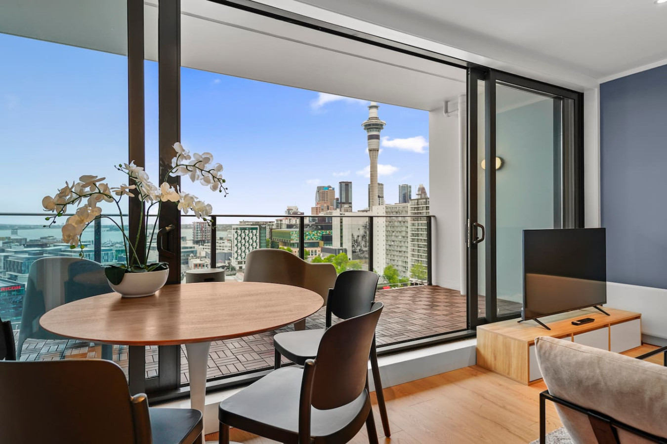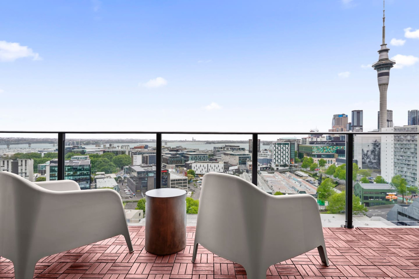 The open living areas come with a 3-seater sofa, a single occasional chair, a smart TV, and a dining table with four chairs. This apartment features a fully functional kitchen with oven, microwave, and dishwasher. The spacious, beautiful balcony offers gorgeous city views and a wonderful view of the Sky Tower at any time of day. Sit back and enjoy your escape away.