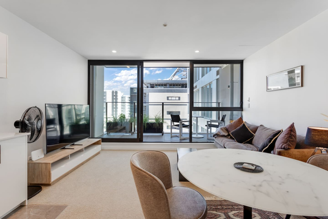 With open-plan living a key feature of this apartment, enjoy coming home to the space of this two bedroom with two bathrooms abode. With well thought out spaces, and quality appliances, enjoy your stay here in Auckland City Centre.