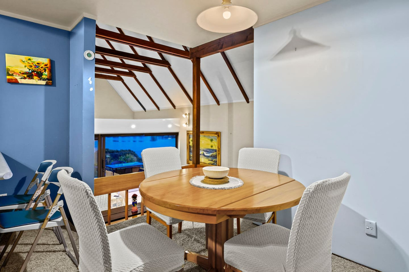 Step inside and feel instantly at home in this light-filled retreat, where open-plan living flows seamlessly between the indoors and outdoors. From the kitchen and dining area, you’ll enjoy views of the lush garden, while the lounge opens out to stunning skyline, sea, and waterway views. With a heat pump/air-conditioning, the main lounge is the perfect spot to gather and unwind with loved ones. On sunny days, the deck and backyard provide a peaceful haven — ideal for morning coffees, lazy afternoons, or quiet evenings under the sky. Both main bedrooms offer serene water and reserve views, creating restful spaces to recharge. The fully equipped kitchen has everything you need to cook at home, and coffee lovers will appreciate the machine for a perfect brew on the deck. And when you’re in the mood to unwind, let your fingertips glide across the piano for a soothing, personal touch.