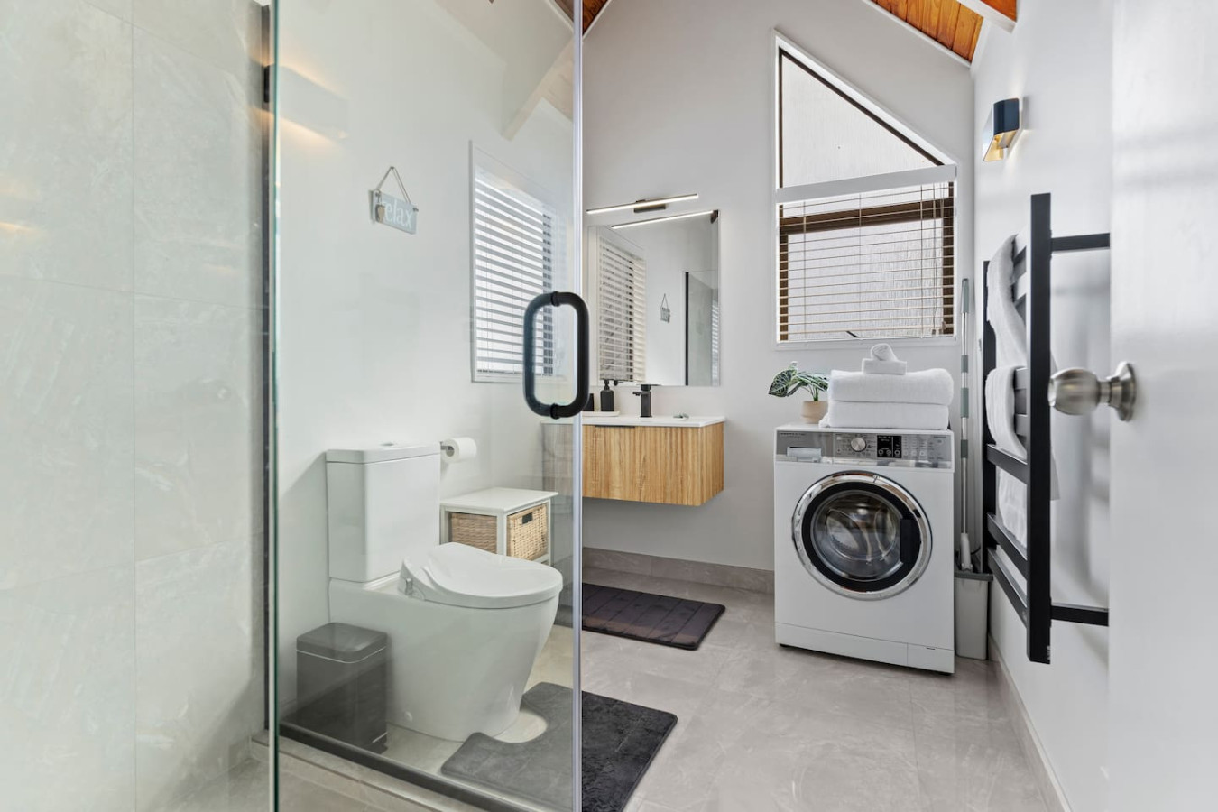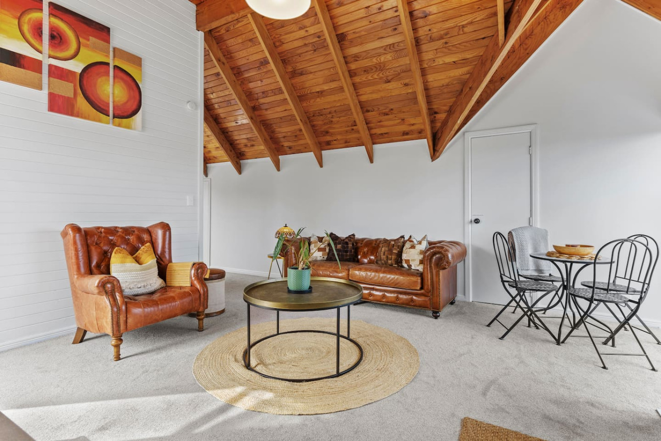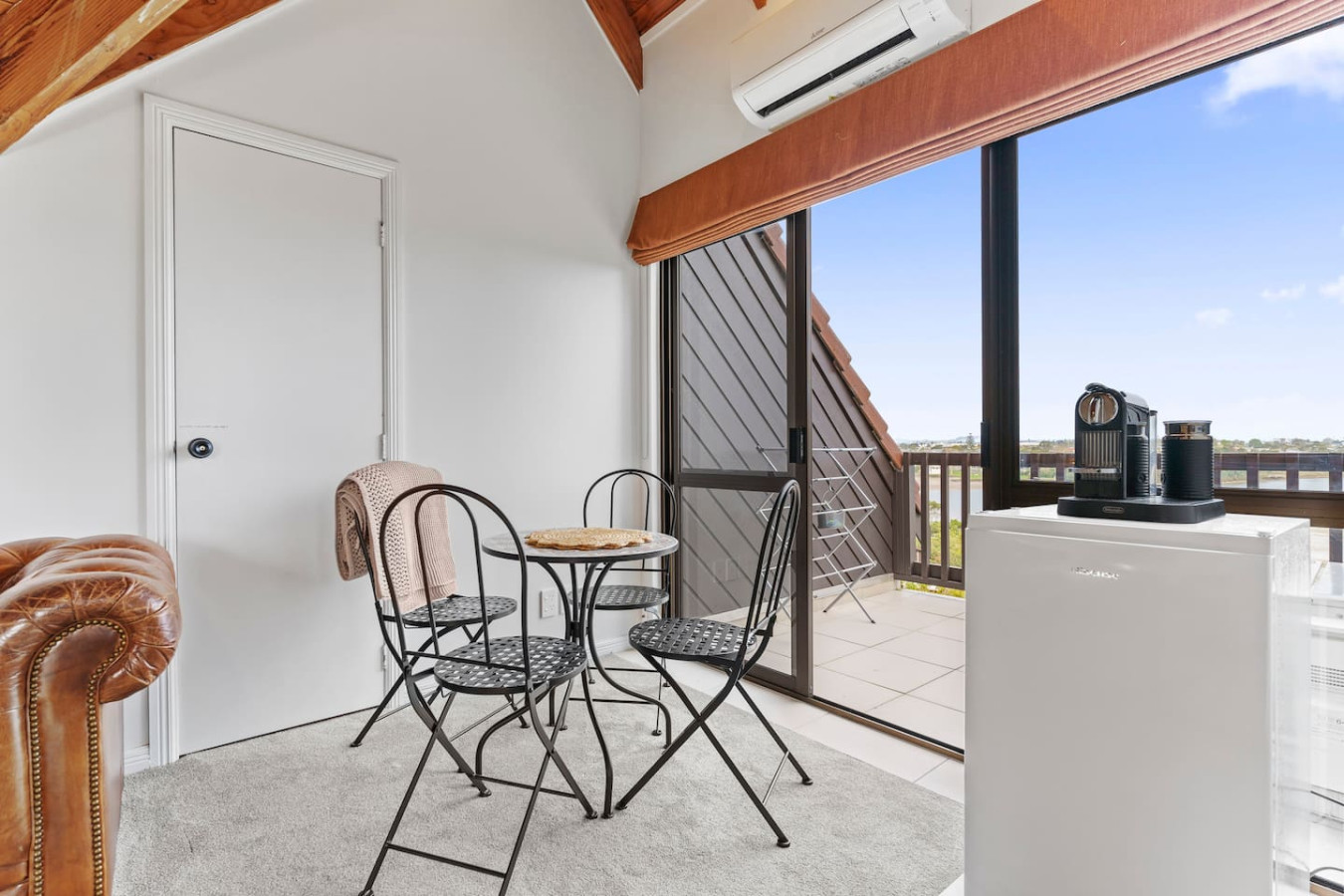 Thoughtfully curated with high-quality furniture pieces and thoughtful furnishing touches, the home offers an open-plan living space with seamless indoor-outdoor flow, featuring stunning views of the river, reserve, and city skyline from the balcony. This one-bed loft with external stairs perches atop a boutique hair salon and is close to many nearby riverside and reserve walks. It features a boutique yet functional kitchenette and a modern bathroom with a washer and dryer combo for guests' convenience, as well as basic appliances, including a mini fridge, toaster, kettle, microwave and a 2-burner electric portable cooktop. The Nespresso coffee machine is a bonus for coffee lovers. The air conditioner keeps it cool in the warmer months and warm in the colder months.